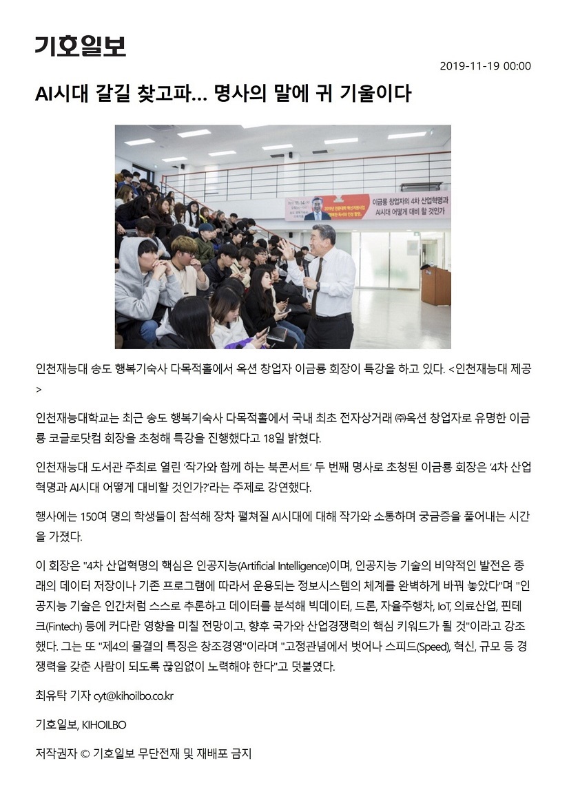 Á¦¸ñ ÀÎõÀç´É´ë, À̱ݷæ ȸÀå°ú ÇÔ²²ÇÏ´Â ºÏ Äܼ­Æ® °³ÃÖ