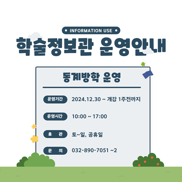 2024Çг⵵ µ¿°è¹æÇÐ ±â°£ µ¿¾È ÇмúÁ¤º¸°ü ¿î¿µ½Ã°£ÀÌ ¾Æ·¡¿Í °°½À´Ï´Ù. À̿뿡 Âü°í¹Ù¶ø´Ï´Ù
