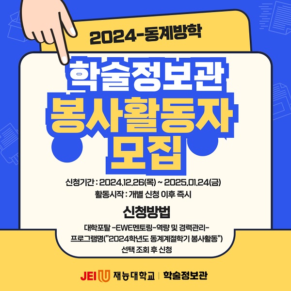 ÇмúÁ¤º¸°ü¿¡¼­ 2024Çг⵵ µ¿°è¹æÇÐ ÇмúÁ¤º¸°ü ºÀ»çȰµ¿ÀÚ¸¦ ¾Æ·¡¿Í °°ÀÌ ¸ðÁýÇÕ´Ï´Ù.