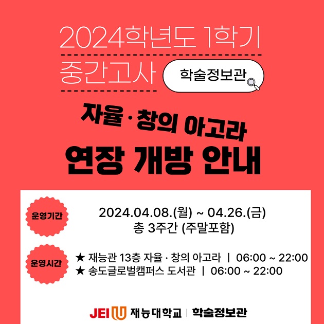 2024Çг⵵ 1Çбâ Áß°£°í»ç ±â°£ ÇлýµéÀÇ ÇнÀȰµ¿À» Áö¿øÇϰíÀÚ ¾Æ·¡¿Í °°ÀÌ ¿¶÷½ÇÀÇ ¿î¿µ½Ã°£À» ¿¬ÀåÇÏ¿À´Ï À̿뿡 Âü°íÇϽñ⠹ٶø´Ï´Ù.