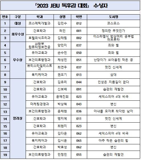 | 2023 JEIU µ¶Èݨ ´ëȸ ¼ö»óÀÚ ¹ßÇ¥ ¹× ½Ã»ó½Ä ÀÏÁ¤ ¾È³» | |||||