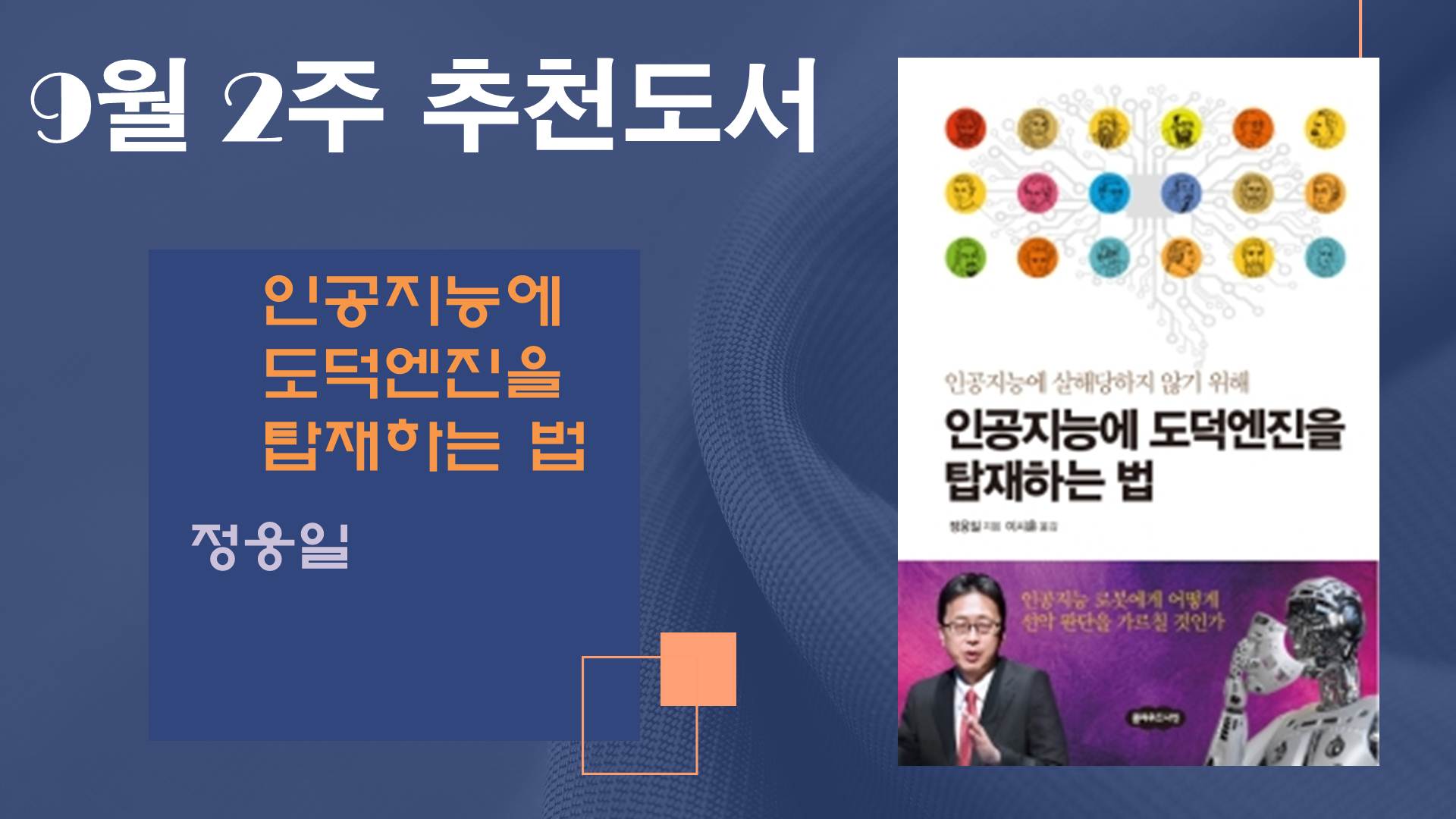 ÀúÀÚ ¼Ò°³ – Á¤¿õÀÏ µµÄì´ë °øÇкΠÀÇÇкΠ±³¼öÀÌÀÚ µµ´ööÇÐÀÚ·Î 1964³â µµÄì¿¡¼ ÅÂ¾î³ ÀçÀϱ³Æ÷ 3¼¼ ÀÇÇйڻç´Ù. ±×´Â ÀÇÇÐ ºÐ¾ß»Ó ¾Æ´Ï¶ó ¹°¸®ÇÐ, °ÇÃàÇÐ, °øÇÐ, öÇбîÁö ±× ¿µ¿ªÀ» Ȱ¹ßÇÏ°Ô ³ÐÇô°¡´Â ¹ÙÀÌ¿À ¿£Áö´Ï¾îÀÌÀÚ Ã¶ÇÐÀÚÀÌ´Ù. µ¶ÀÏ ±«Å× ¿¬±¸¼Ò Ưº°ÀåÇлýÀ¸·Î ¼±¹ßµÆ°í ¹Ì±¹ ¸Å»çÃß¼¼Ã÷ Á¾ÇÕº´¿ø ÀÇÇаø·Î»ó, Á¤ÇüÇÐȸ»ó, ÀÇ·áÀç´Ü»ó, ¹Ì±¹ ±¹¸³º¸°Ç¿øNIH»ó, ÀϺ» ÀΰøÀå±âÇÐȸ ³í¹®»ó, ÀϺ» ¹ÙÀÌ¿À¸ÞÆ®¸®¾ó ÇÐȸ»ó µîÀ» ¼ö»óÇß´Ù. ÁÖ¿ä Àú¼·Î´Â ¿Ö »ç¶÷À» Á×ÀÌ¸é ¾È µÉ±î?¿Í (µ¿°æ´ë Çѱ¹ÀÎ »À ¹Ú»ç°¡ ¾Ë·ÁÁÖ´Â) Àå¼öÇõ¸í µîÀÌ ÀÖ´Ù. Ã¥ ¼Ò°³ – (ÀΰøÁö´É¿¡ »ìÇØ´çÇÏÁö ¾Ê±â À§ÇØ)ÀΰøÁö´É¿¡ µµ´ö¿£ÁøÀ» žÀçÇÏ´Â ¹ý ÀΰøÁö´É ·Îº¿¿¡°Ô ¾î¶»°Ô ¼±¾Ç ÆÇ´Ü, Áï µµ´ö¿£ÁøÀ» žÀçÇÒ °ÍÀΰ¡ ÇÏ´Â ÁÖÁ¦¸¦ ´Ù·ç°í ÀÖ´Ù. ¿©¼¸ ¹øÀÇ °ÀǸ¦ ÅëÇØ °í´ë¿¡¼ ±ÙÇö´ë »ç»ó±îÁö °í±Ýµ¿¼ÀÇ µµ´ö »ç»óÀÌ ¾î¶°ÇÑ ±¸Á¶·Î ÀÌ·ç¾îÁ® ÀÖ´ÂÁö¸¦ Æò¸éÀûÀ¸·Î ºÐ¼®ÇÏ°í ºÐ·ùÇÏ¿© µµ´ö ½Ã½ºÅÛÀÇ °øÅëµÈ ¿ø¸®¸¦ ÃßÃâÇÑ´Ù. ±×¸®°í ·Îº¿¿¡°Ô ¾î¶»°Ô µµ´ö¿£ÁøÀ» žÀçÇÒ Áö¸¦ ´Ù·ç°í ÀÖ´Ù. ±×µ¿¾È À̰úÀÇ ¿µ¿ªÀ̶ó°í¸¸ ¿©°Ü¿Ô´ø ÀΰøÁö´É°ú ¹®°úÀÇ ¿µ¿ªÀΠöÇÐ, µµ´ö, »çȸ¼ºÀ» Á¢¸ñ½ÃÄÑ µ¶Æ¯ÇÏ°í »õ·Î¿î ½Ã°¢À¸·Î ±× ¹®Á¦¸¦ ¹Ù¶óº¸°í »ý°¢ÇÏ°Ô ÇÑ´Ù. Áö±Ý±îÁö ÀΰøÁö´ÉÀ» ´Ù·ç´Â Ã¥µéÀº ½ñ¾ÆÁ® ³ª¿À°í ÀÖ´Ù. ÇÏÁö¸¸ ´ëºÎºÐ ÀΰøÁö´ÉÀ» °¢ ¾÷¹« ºÐ¾ß¿¡¼ ¾î¶»°Ô Ȱ¿ëÇÒ °ÍÀÎÁö¸¦ ´Ù·ç´Â µ¥ ºñÇØ »ç¶÷¸¸ÀÌ »ý°¢ÇÒ ¼ö ÀÖÀ¸¸®¶ó ¿©°ÜÁ® ¿Â ‘µµ´ö’ÀûÀÎ ºÎºÐÀ» AI¿Í ¹¾î¼ ´Ù·ç°í ÀÖ´Ù´Â Á¡¿¡¼ ´Ù¸¥ Ã¥µé°ú ±²ÀåÈ÷ Â÷º°ÈµÇ¾î ÀÖ´Ù.